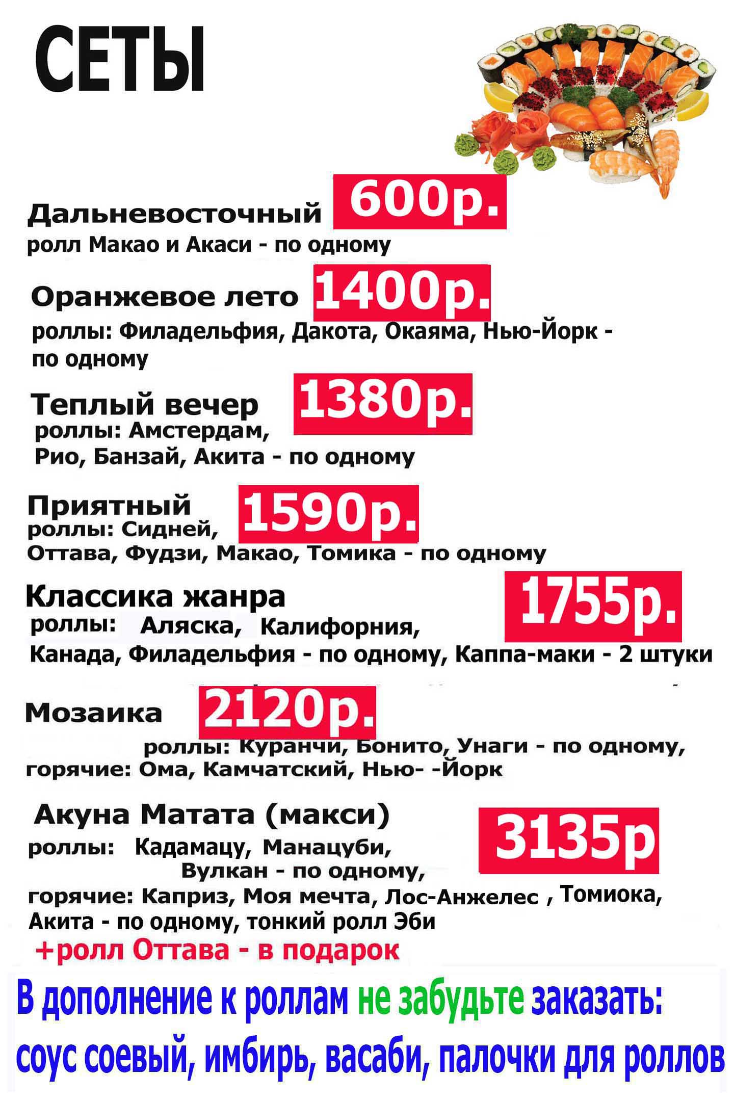 В нашем меню вы найдете блюда традиционной японской кухни: суши, роллы и сашими, приготовленные из самой свежей рыбы и других ингредиентов, горячие блюда, а также легкие и полезные салаты.